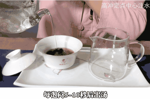 5—8泡:沸水,高冲定点中心注水,每泡闷5—10秒后出汤。