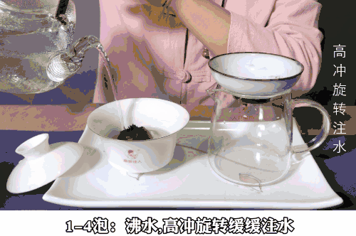 1—4泡:沸水,高冲旋转注水,即入即出,无需闷泡。