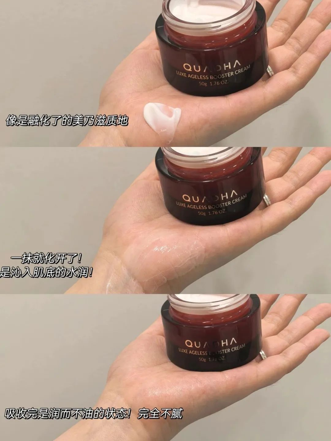 作为一款具有即时抗老效果的面霜,这款面霜中还添加了双重紧肤因子——茵密莱+水解胶原,涂抹上脸后会在皮肤上形成一层隐形的惊喜薄膜,就像一张隐形大手,可以动态提拉松垮下垂的肌肤!