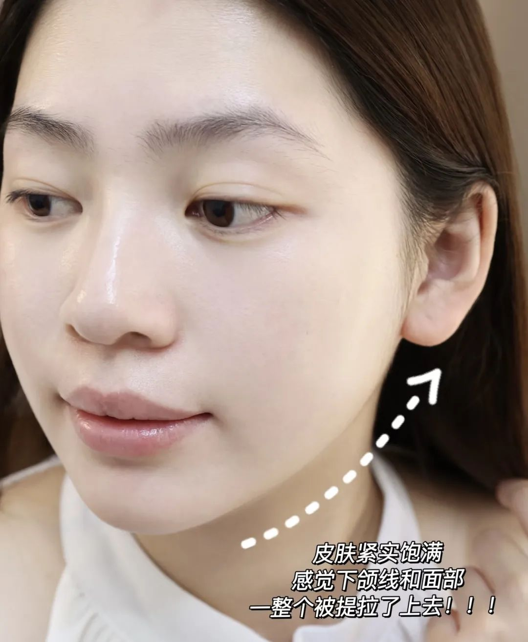 苹果肌看起来会饱满一些,下颌线轮廓感可能更清晰,细纹(特别是动态纹)有被淡化的趋势,整体肤质看起来更细腻透亮。