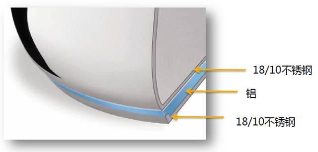 呐,就是在两层不锈钢中间,夹了一层铝。