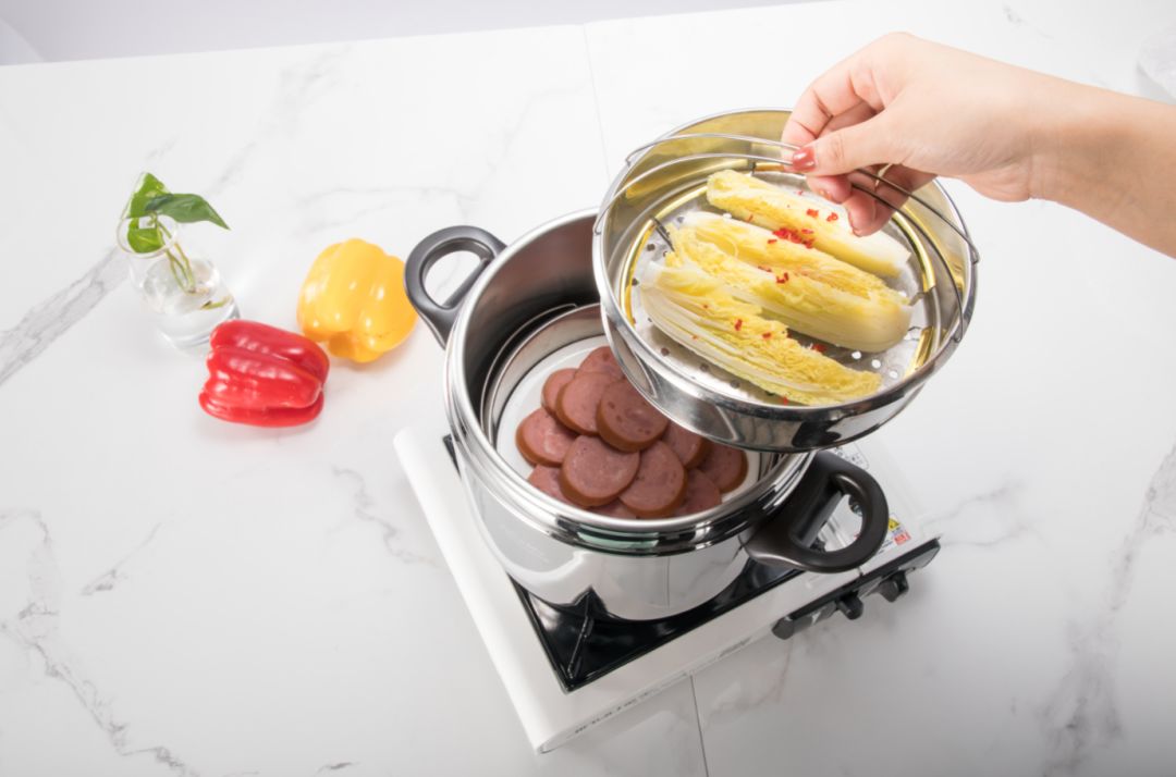 底下煲汤或是焖肉,中间放米饭或是杂粮,最上一层放一些小菜,基本上能喂饱1-3个人。