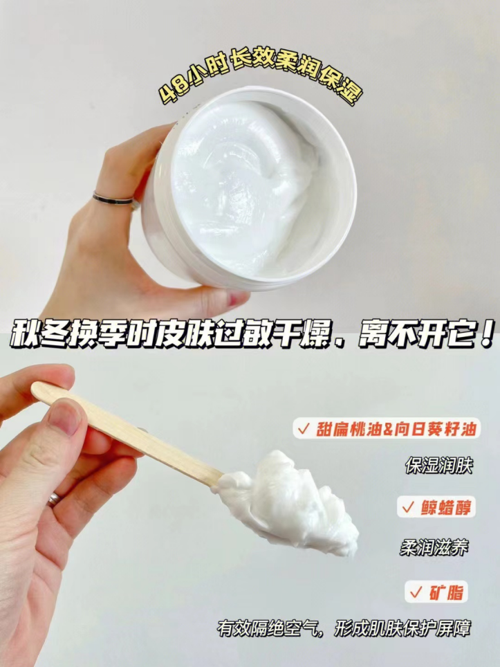 甜扁桃油成分。它是天然的植物油脂,能深度滋润干燥肌肤。