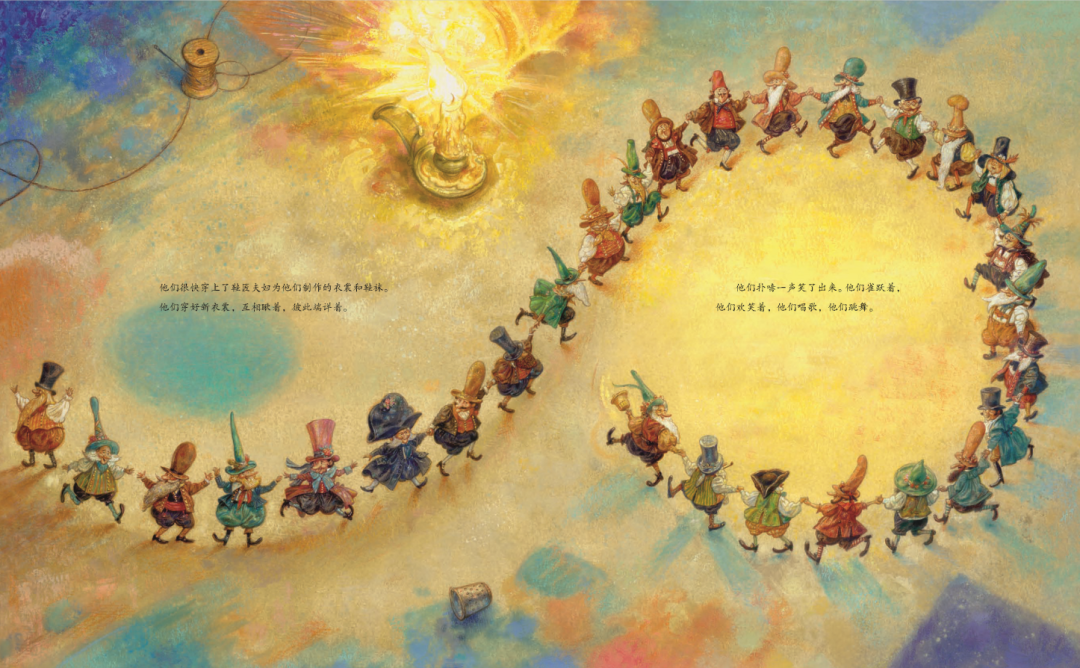 一对穷苦的鞋匠夫妇得到了一群善良的小精灵的帮助,为了感谢小精灵,鞋匠和他的妻子也为小精灵们准备了神秘礼物……这是一个包含善意与感恩的经典格林童话,安东把这个故事演绎得温暖、欢快而又妙趣横生。