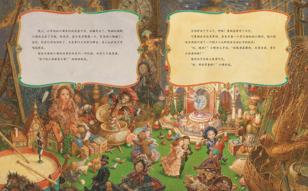 《至美童话殿堂》画面生动精致,笔触细腻,想象力丰富,色彩绚丽,含有大量令人惊喜的细节,人物富有生命力。