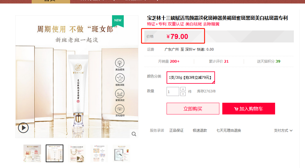 这款祛斑霜,由大名鼎鼎的宝芝林和明星品牌广州天玺联手研发,这在业内是罕见的。
