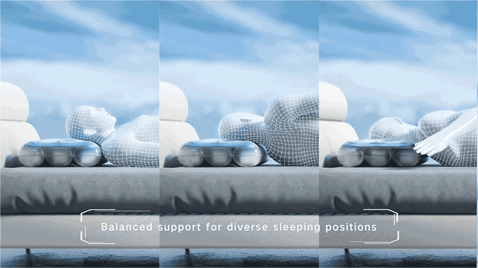 这一革命性设计完美地实现了所有三个目标:zui大支撑、凉爽的睡眠和可调节性。