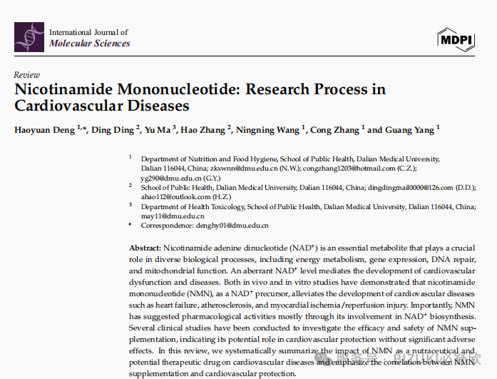 改善心力衰竭:NMN通过改善线粒体功能、减少氧化应激和维持NAD+/NADH比值,减轻心力衰竭的发展。 其他心血管疾病:NMN在心肌缺血/再灌注损伤、动脉粥样硬化、高血压和心律失常等疾病中表现出保护作用,减少氧化应激、炎症反应,改善血管内皮功能,显著提高NAD+水平。 多项NMN人体研究:NMN口服的安全性和耐受性得到证实,显著提高循环NAD+水平,无显著不良反应;长期补充NMN可改善代谢功能,可提高肌肉胰岛素信号传导和胰岛素敏感性,尤其在超重或肥胖的绝经后女性中效果显著。
