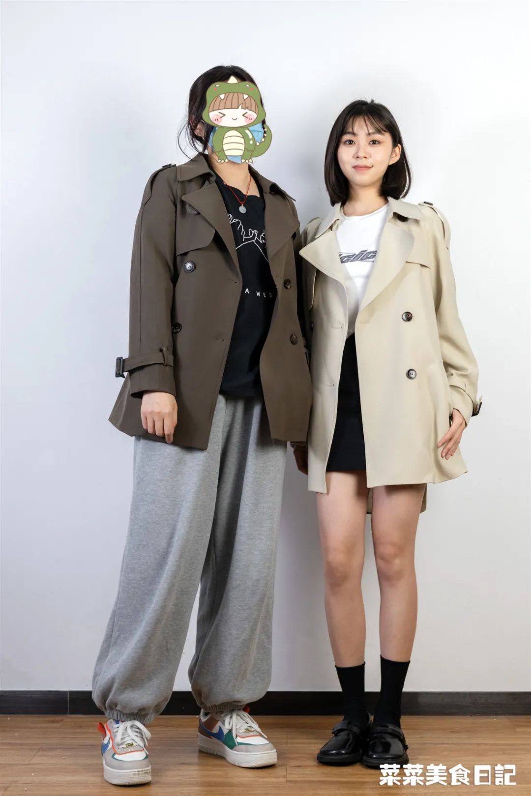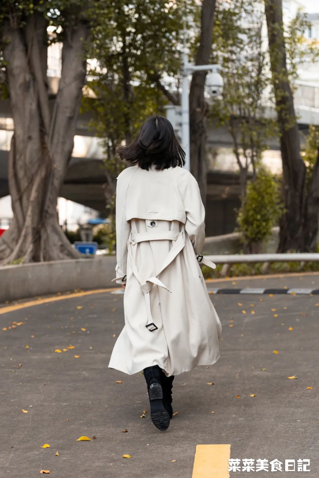 只要选对了适合自己的长度,上身就能和模特一样走路带风~ 所以,今天我一次给大家拿了长、短两款风衣,高矮个子的姐妹们都能找到合适的长度↓ 版型参考了经典的Burberry风衣,H型版型、双排扣设计。 相比廓形的风衣,H型风衣更不挑身材,胖瘦高矮都能穿。 宽度适中,裙摆状的下摆,不仅更有女人味,而且还能掩盖胯宽、大腿粗问题哦~ 身材单薄的姐妹也不用担心太宽,把腰带一绑就很显腰身。 摄影师小姐姐甚至说:能穿出了千元大牌风衣的感觉!(实际不到半价就能拿下~)这件风衣用的是92%的聚酯纤维+8%的氨纶制成的高支高密面料(dio*2021新款风衣用的也是它)。 相比我去年买的纯棉面料的风衣,更柔软、顺滑,随便蹂躏都不会留下太明显的褶皱。