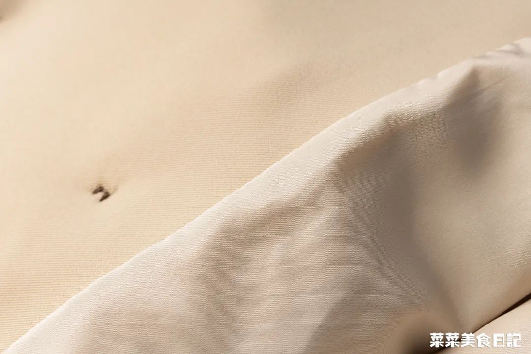 衣面采用的是双止口缝纫工艺,在单止口的基础上,正面辑两道线,针面平整细密,与面料完美衔接。