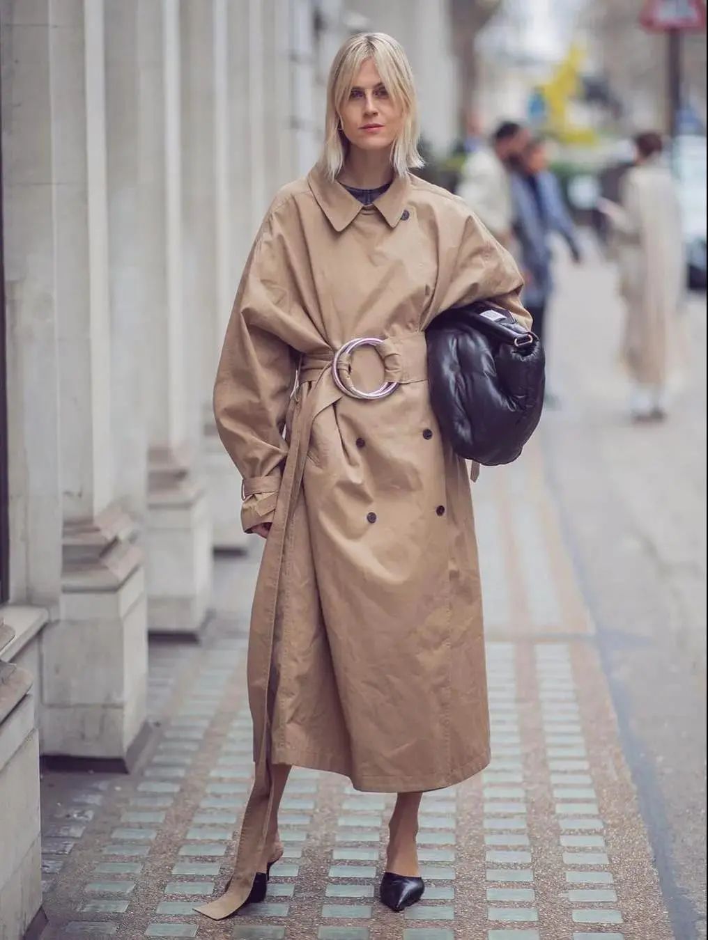 长款的风衣可以这样直接裹起来穿,防风保暖,还能保持神秘高冷。