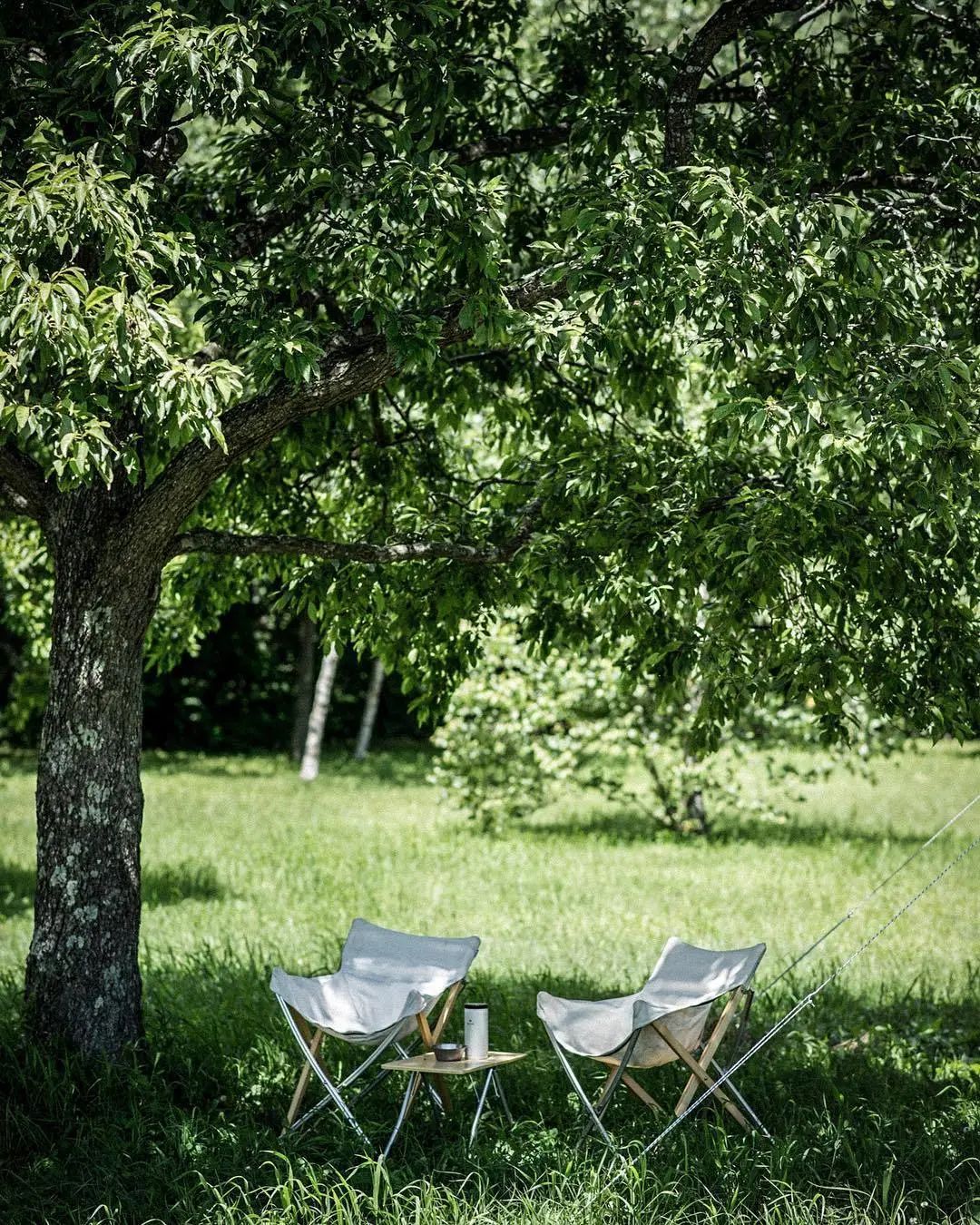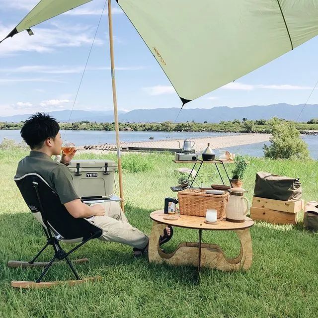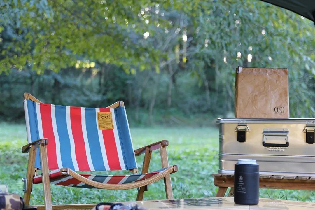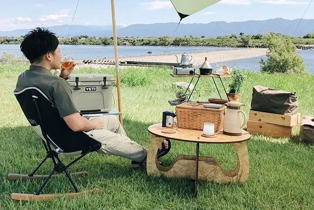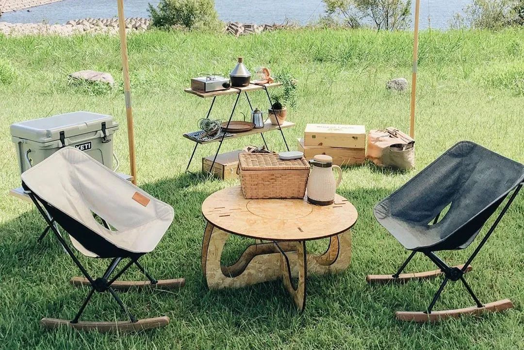 的椅子,木质的天然手作质感与户外毫不违和,而且坚固、稳定。当然,木头椅子好看是好看,但远不如合金椅架来的轻巧,更适合自驾露营。