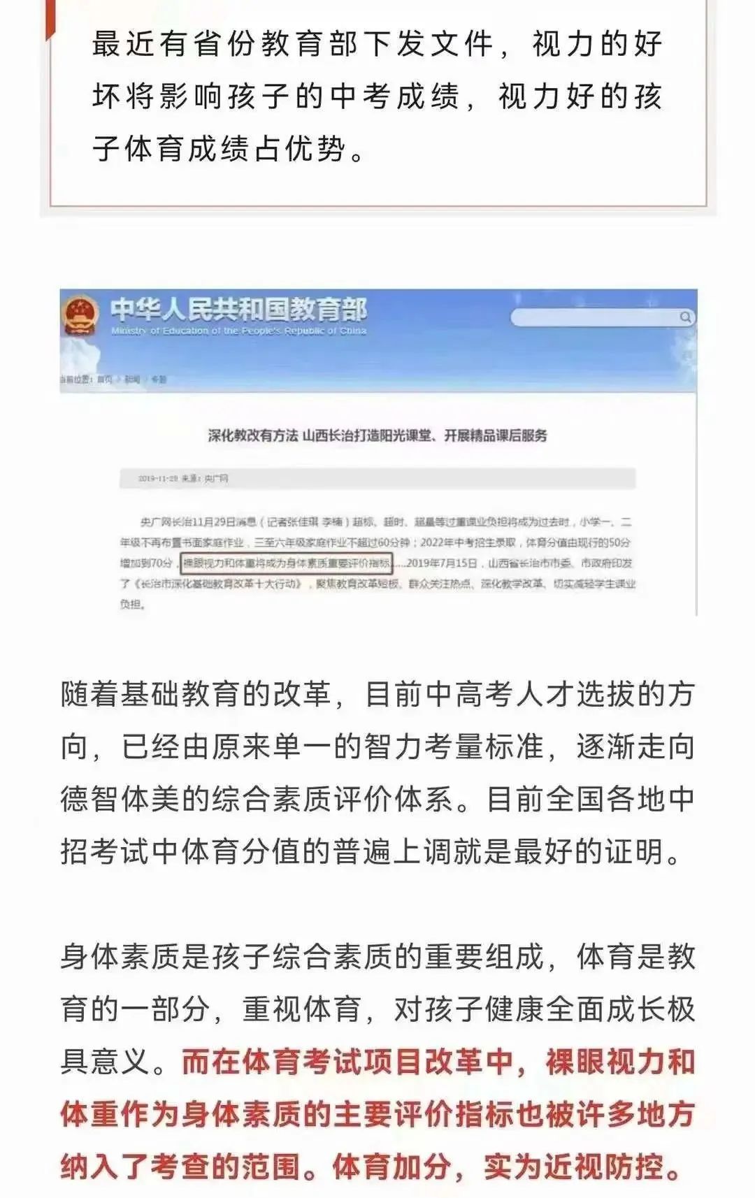回到那条评论,“焦虑个什么劲?”,重视孩子的近视防控真的是在过度焦虑吗?当然不是,预防高度近视,减少戴眼镜的束缚和烦恼,这对孩子来说是多么重要的事啊!更不要提对孩子未来职业选择的影响了,国防生、医生、飞行员等等职业都对视力有严格的要求。近几年,甚至有地区将视力好坏纳入孩子的中考成绩。现在世界变化得如此之快,我们也许不知道学什么对孩子的未来有用,但我们很清楚,身体的健康、尤其眼睛的健康一定对未来有用。如果家长不未雨绸缪,错过了孩子宝贵的近视防控黄金期,等孩子长大了,眼球定型了,想帮忙也帮不上了。