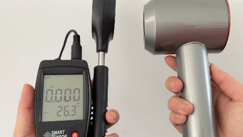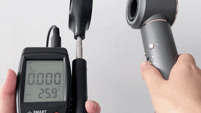 ZOELYS是通过内部的温度感应器与控制芯片来自行调节「吹到你头皮上的风」的温度。我们再通过一个实验来测试下这个功能有多NB!