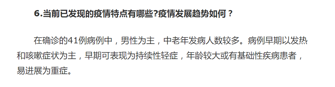 在确诊患者中,中老年人发病人数更多,年龄较大、患有基础性疾病的,抵抗力较差,比普通人更容易感染病毒。