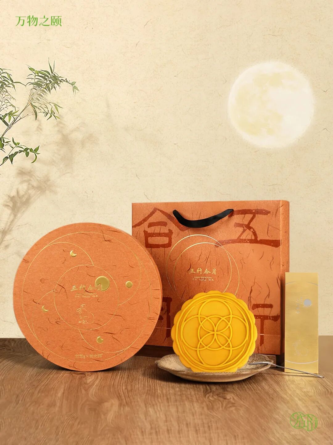 在配色上,我们依循传统,中秋属金秋,承接过度五行中的“土”,对应五色中的“黄”,将东方养生智慧巧妙融入其中。