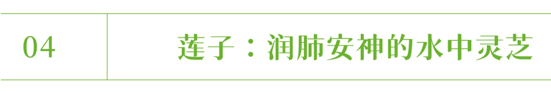 莲子性平,味甘涩,归脾、肾、心经,能补脾止泻、益肾涩精、养心安神,同时也有一定的润肺作用。秋季除了秋燥,还容易出现“秋乏”“失眠”,莲子既能辅助润肺,又能安神助眠,尤其适合秋季睡眠质量差、伴有轻微咳嗽的人群。