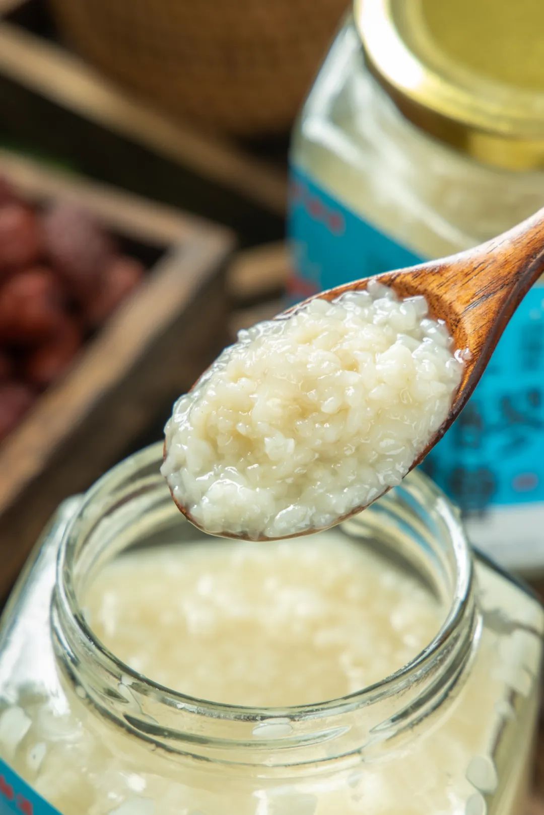 市面上的糯米酒,有些发酵太过酒味太重,有些发酵太轻糯米不够酥烂,口感发硬滋味大打折扣。而广东韶美实业有限公司生产的糯米酒,醪糟绵软松弛且轻盈,入口轻盈丝滑、悠长甘甜。