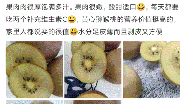 爱吃水果的顾客们,都表示这款黄心猕猴桃,皮薄多汁,果肉嫩滑,酸甜可口,价格还很实惠。