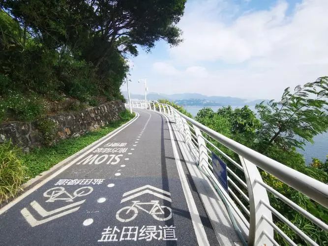 盐田海滨栈道全场19.5公里,西起中英街古塔公园,沿黄金海岸线,串联起沙头角、盐田港、大小梅沙,背仔角灯塔为终点”。路面平缓而细长,是一条非常舒适静谧治愈的观海大道。