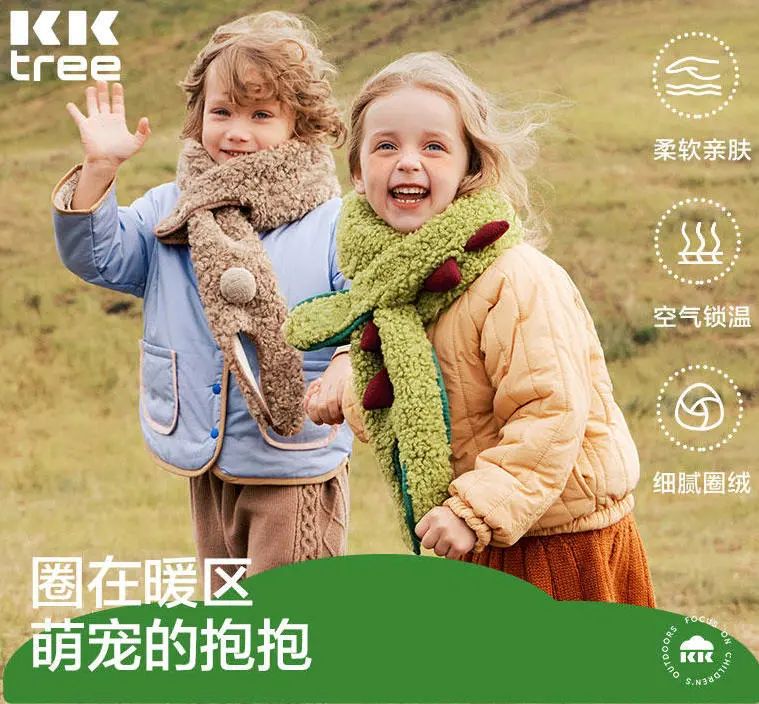 这个季节必须分享给宝妈的儿童温暖好物,kk树护颈围脖,萌趣设计,母婴级A类材质,双面毛绒,柔软亲肤,蓄热保暖,更有防静电处理,不怕小电惊吓,冬日外出玩雪抗寒必备~