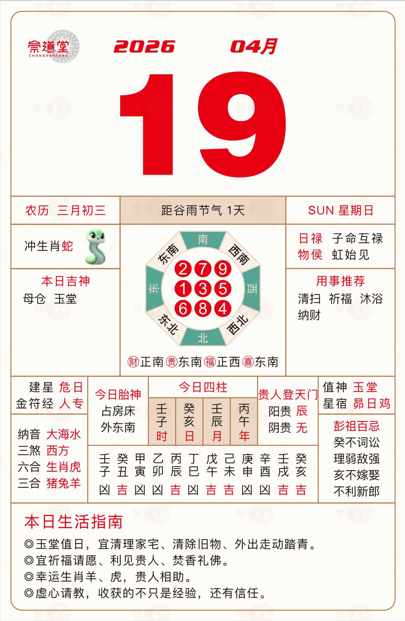 2026年4月25日 农历三月初九 己巳日 冲猪