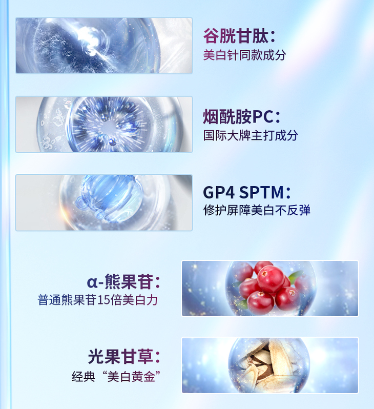 能快速渗透至肌肤黑色素生长层,有效抑制黑色素形成,彻底祛黄净白,肌肤持久美白。可以有效地抑制黑色素生成,防止由日晒引起的色斑、雀斑。