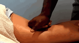 按摩过的小腿的肌肉明显放松了,松松软软的。