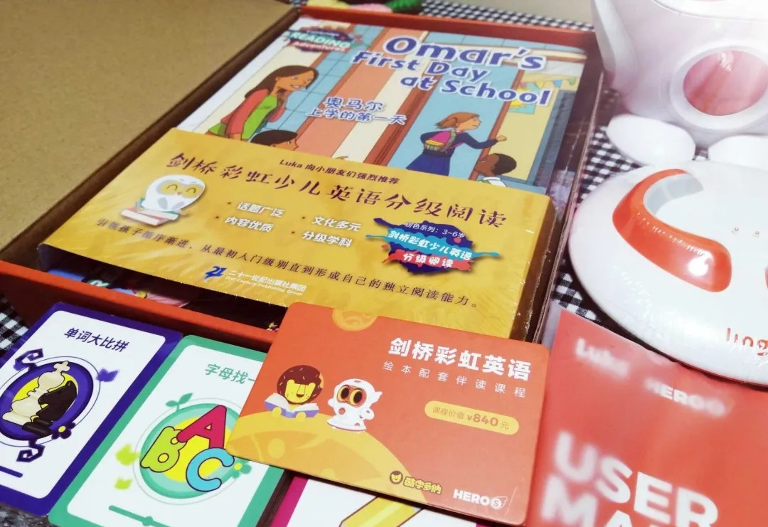 还配套了剑桥彩虹阅读英文分级绘本,以及彩虹英语课程等。按照官方的说法,覆盖了 3~12 岁高频词汇,可以无缝衔接小学 3 年级英语。换句话说,购买了 Luka Heros 之后,你大可不必担心自己原来购买的绘本较多会导致「吃灰」的情况出现。
