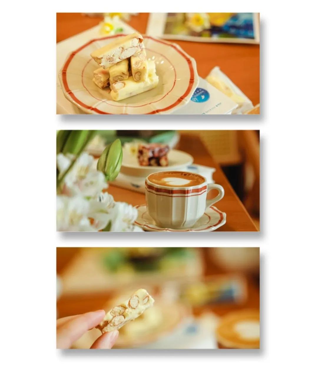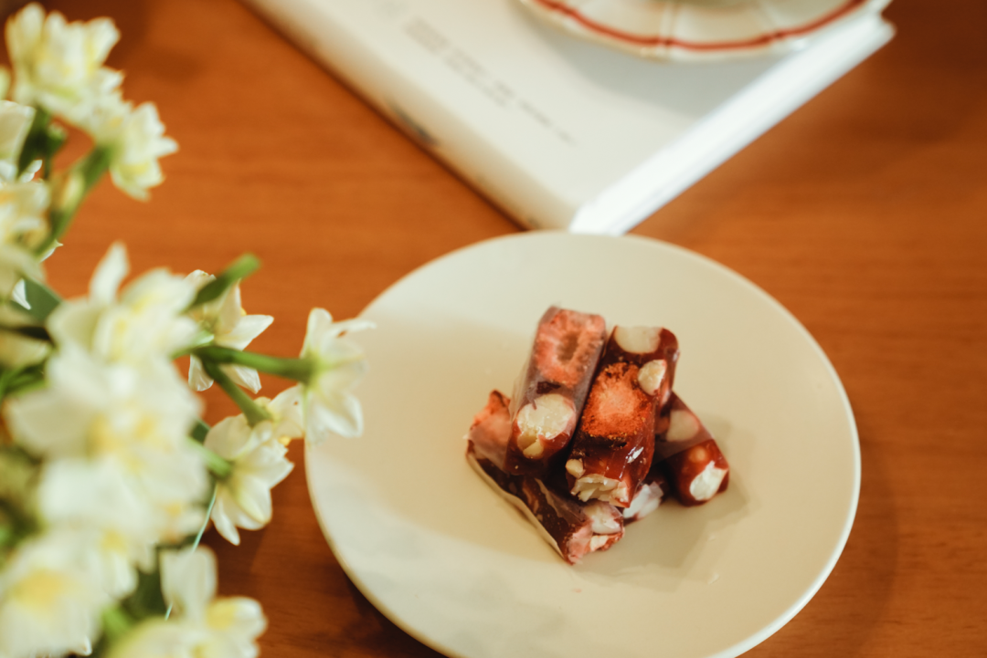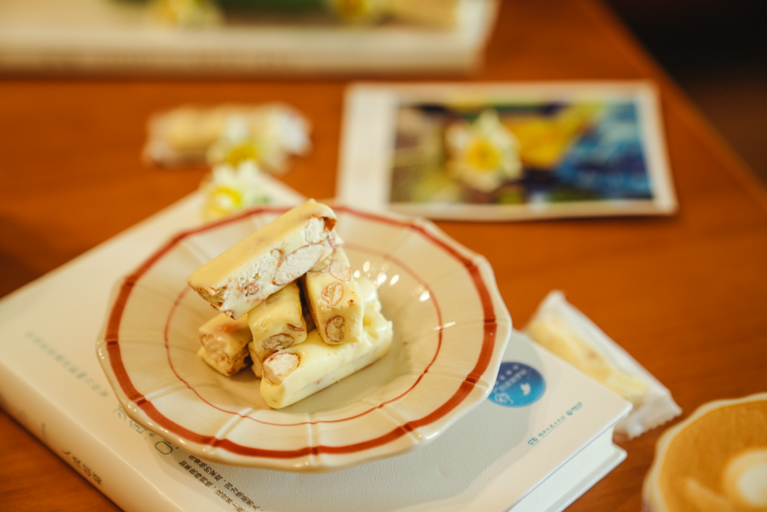 还记得一次吃牛轧糖,软糯的云朵似的糖,裹着坚果,带着奶香味,咬一口,既软糯又坚脆,轻微弹牙又不至于粘腻,没有那么甜,太好吃了。这种味道一直絮绕在记忆里,被惦记了很多年。