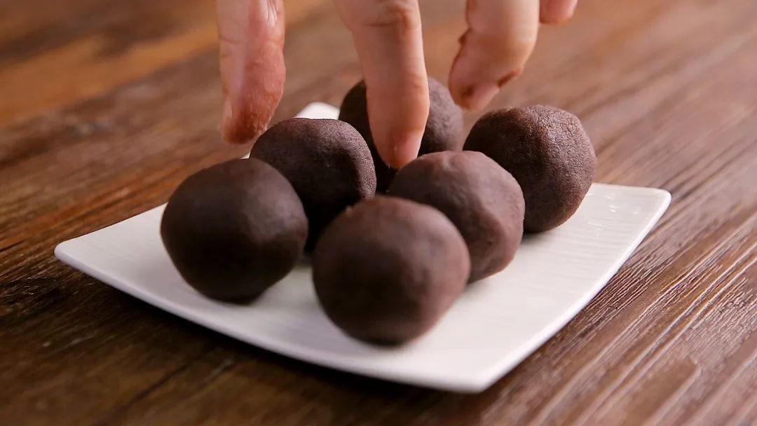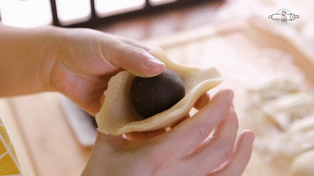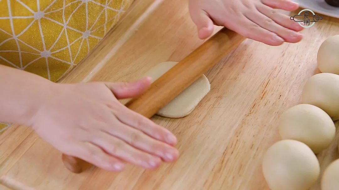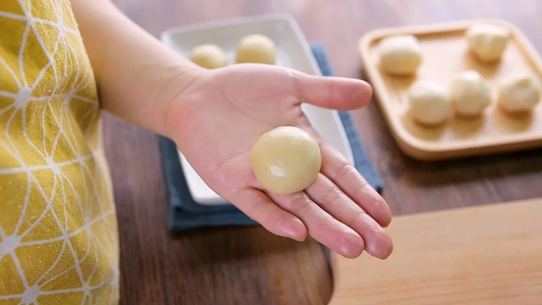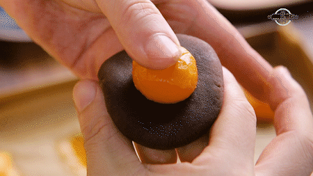 红豆沙分割成团,根据需要的数量分割30g/个,将红豆沙包裹烤焙好的咸蛋黄备用,视频中用的是易小焙豆沙馅,操作起来很顺手