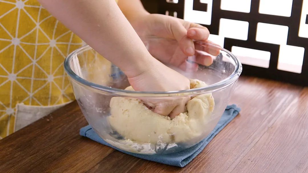 制作油皮部分,将油皮中所有的食材称量混合一起最好揉至扩展阶段