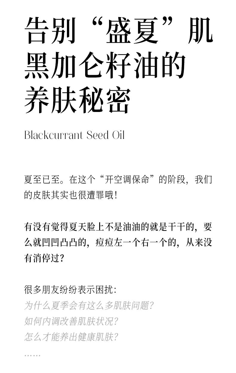 告别“盛夏”肌,黑加仑籽油的养肤秘密