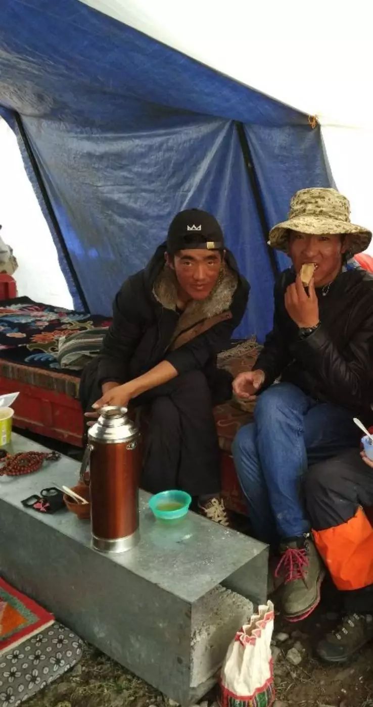 他们请我吃糌粑,好美味。 感谢扎加亲手做的糌粑。