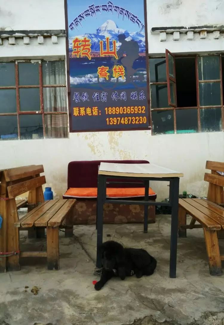 塔钦街巷的一家转山客栈,一只黑狗安静地凝望着转完神山的人。