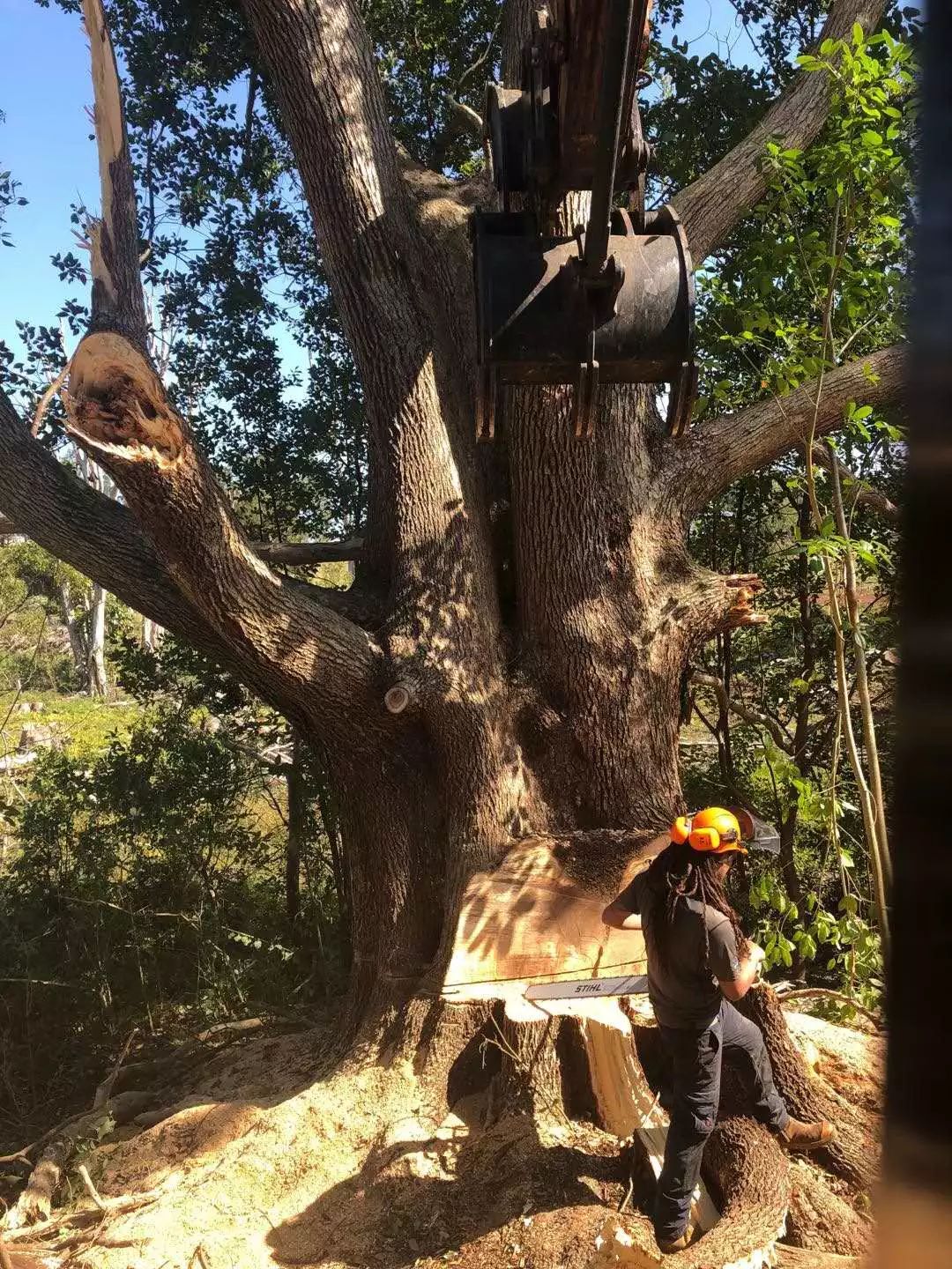 相比较普通砧板,我们的砧板要求都是整木切割,再经人手打磨而成的,因此对原木的直径和密度要求很高。 树龄太小的香樟树,就算砍下来也用不了,因为木质达不到我们的砧板要求。 国内虽然也有香樟木,但这么粗壮的老香樟却极少见到。