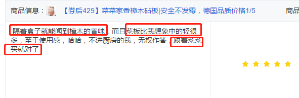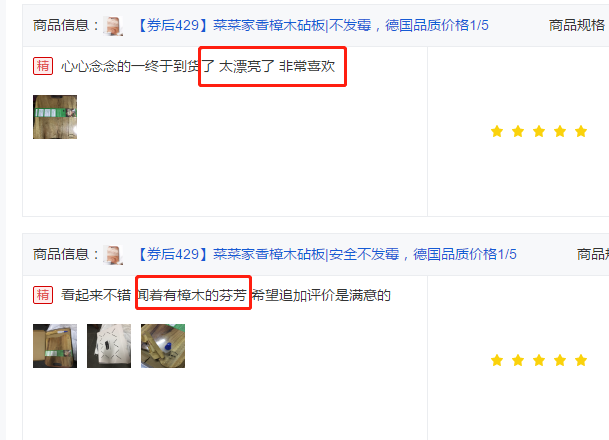 不算便宜,但想到在新年来临之际,给家里添一块能用十年八年、陪伴自己的时间比刀具还长的好砧板,也是值得的。 注意:每块砧板纹理不同,收到货的样式跟图片不一样,不能作为退货依据。