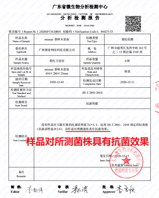 效果还得到广东省微生物分析检测中心的报告认证,质量安全有保障!
