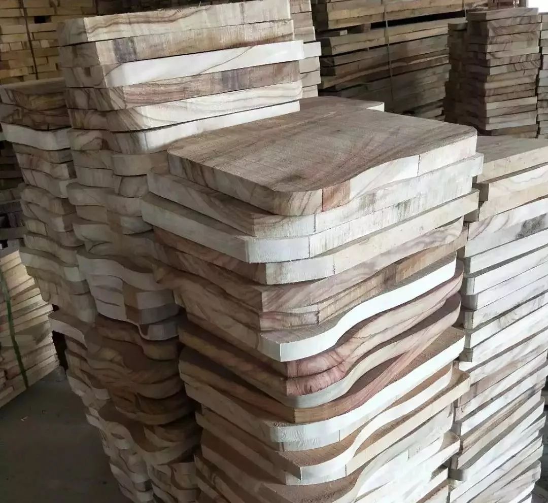 伐木、防虫、过海、入关,整整一个半月,菜菜才在工厂见到了这批木头。 木头安全到达,砧板就成功一半了,还有一半就看师傅的手艺了。 1.直径不能太小,一般一根木头只有1/3合格,剩下2/3废弃;