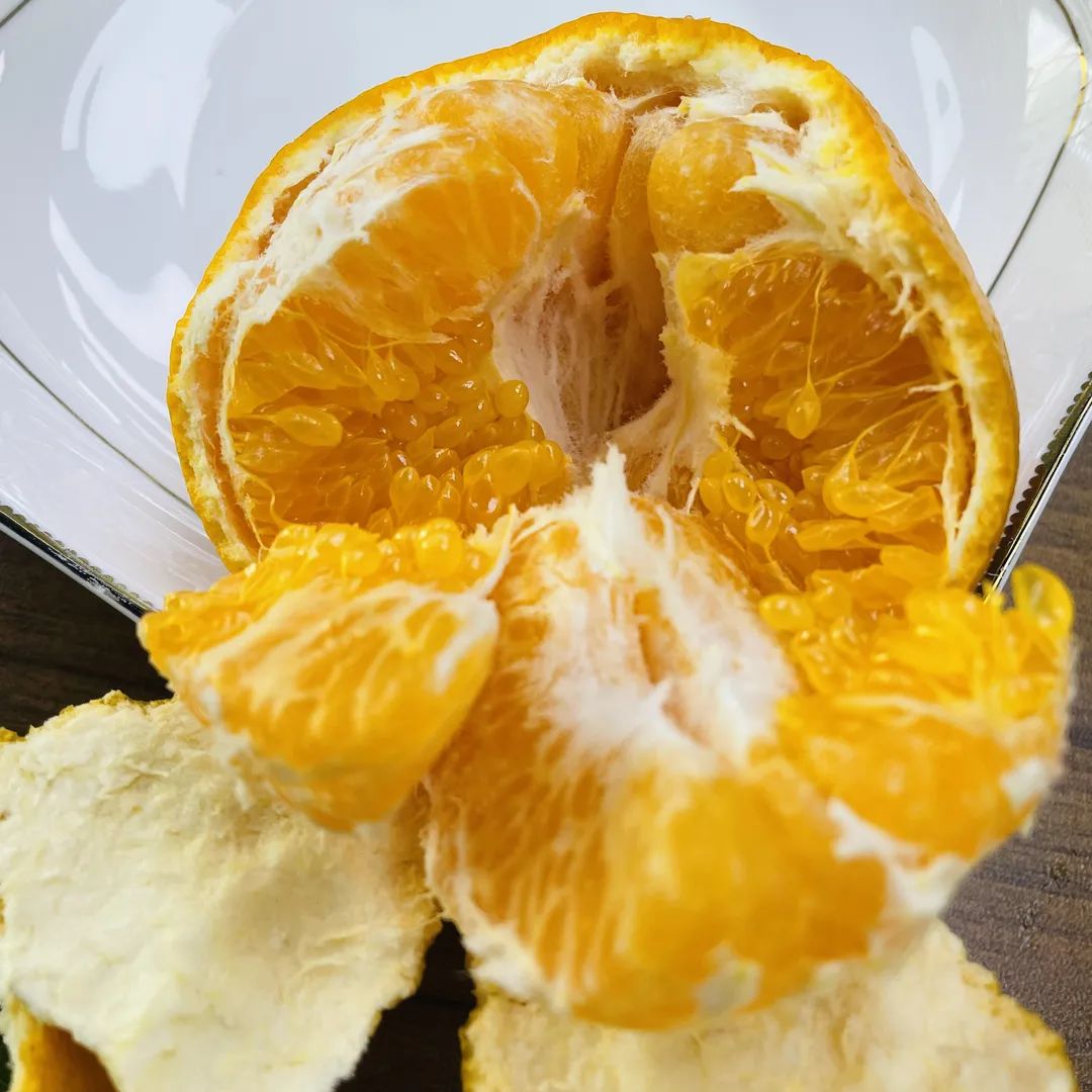 它最大的特点就是果粒大而果汁多。剥开橙黄圆润的果皮,一入口便汁水四溢,像一粒粒包满果汁的小炸弹在口腔中接连爆炸,浓浓的柑橘味弥漫口腔。