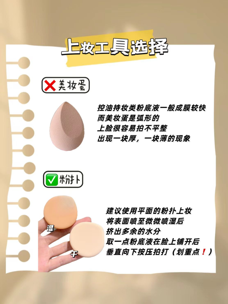 注意啦!像金盾这种持妆型控油粉底液,上妆的时候有几个小技巧教给你~