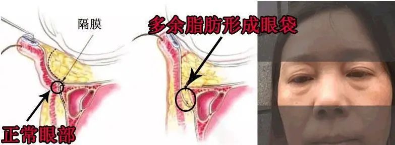 眼周肌肤脂肪水肿,就形成了眼袋,