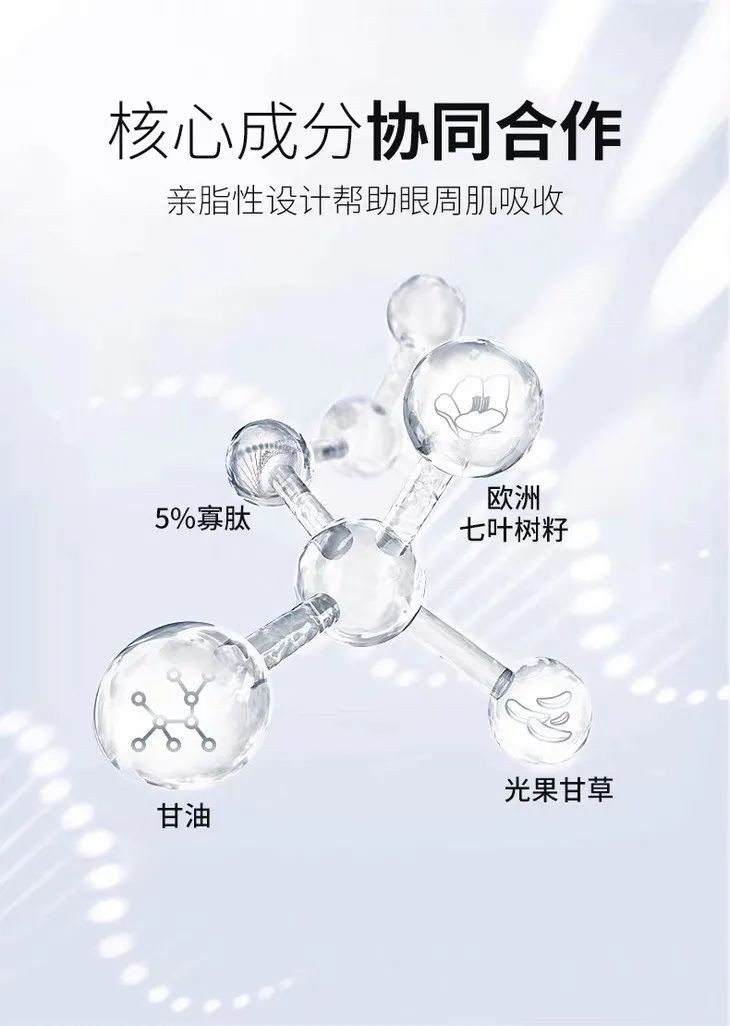 寡肽+甘油成分可助于亮眼抗衰老的功效。