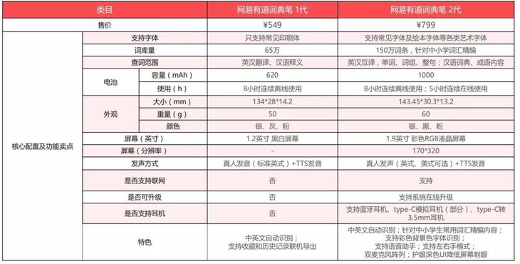 升级后的网易有道词典笔2.0的使用体验更加优秀:一代必须笔身垂直90°才能扫描出单词,而网易有道词典笔2.0则可以30°斜角扫描。