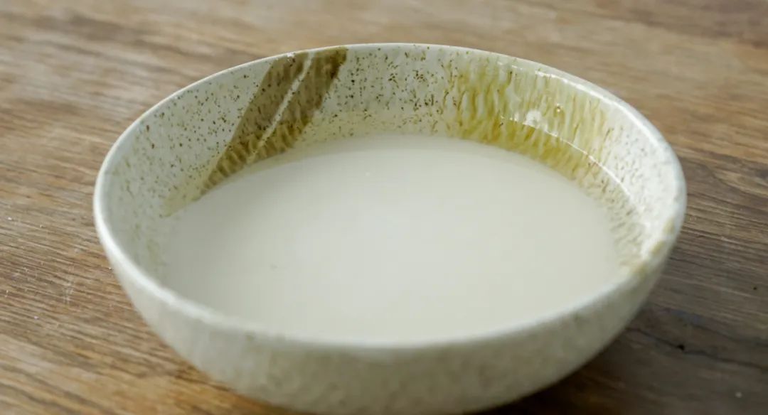 2.调制酱汁:将淀粉倒入碗中,再加水搅拌成水淀粉,待淀粉沉淀后将水倒掉。 >>淀粉和水的比例1:3。