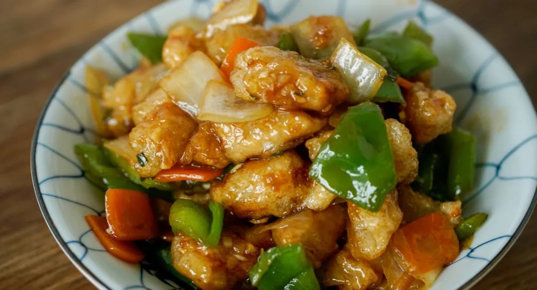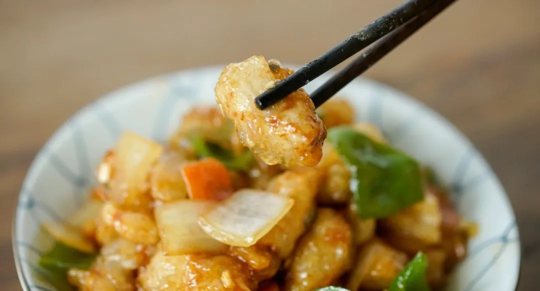 一入口,恰到好处的酸甜口感,面衣弹牙又不粘口,面衣让肉段入口更有嚼劲,且越嚼越香,再加上有青椒、洋葱稍微中和一下酸甜口味,一盘下肚也不觉腻。