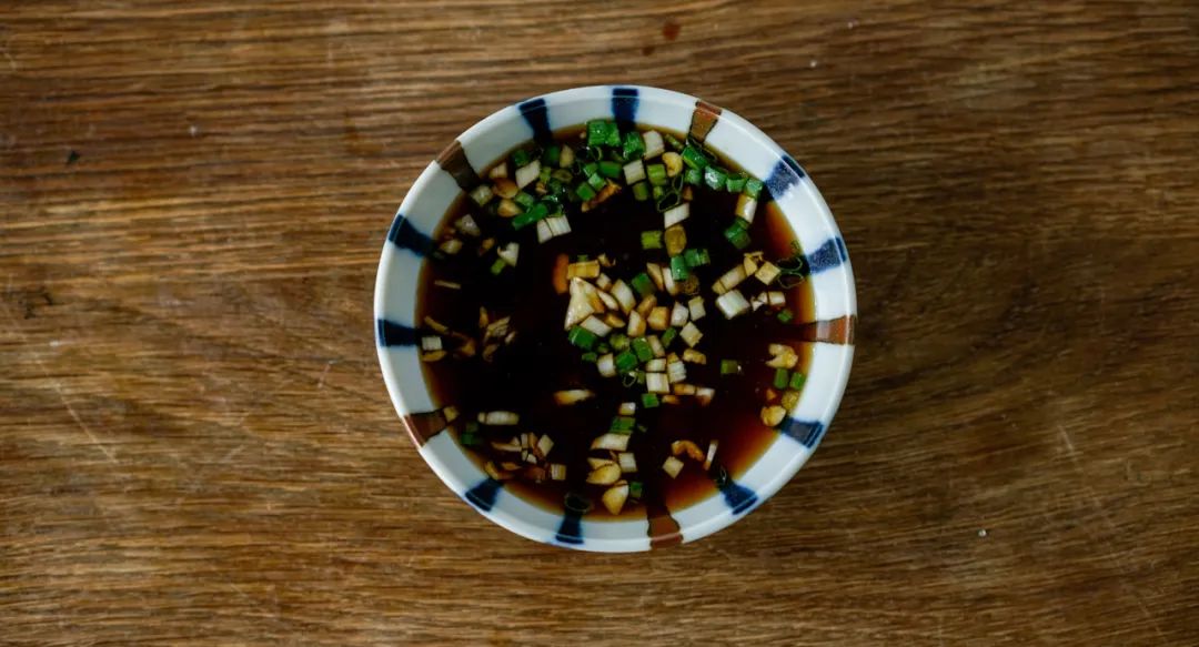 在碗里放点葱蒜,盐半勺,生抽1大勺,糖1小勺,老醋一点,淀粉1小勺,水小半碗,拌匀备用。