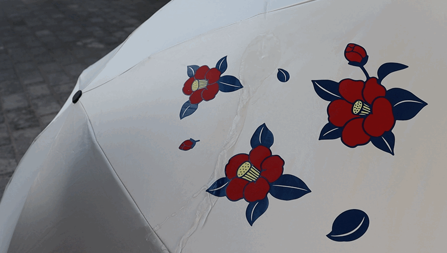 六折伞其中的一折用手绘花朵做画