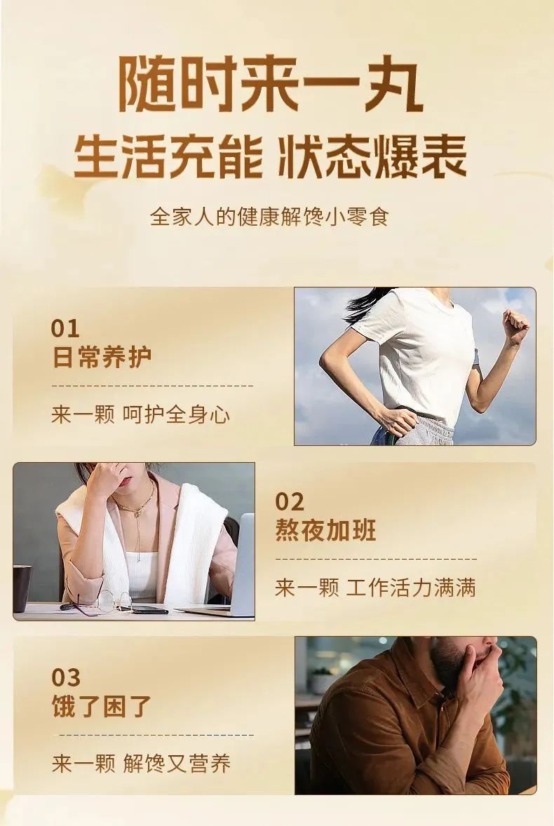 不只适合肾气亏损的中老年人群,更是全年龄层热爱养生人士的“宝藏零食”,下午工作、运动太累,容易肚子饿、没精神,吃1粒补充能量,再健康不过了~