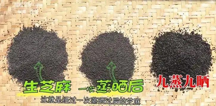 经过九制,黑芝麻融入了太阳的纯阳之气,中医认为对人体大有裨益。